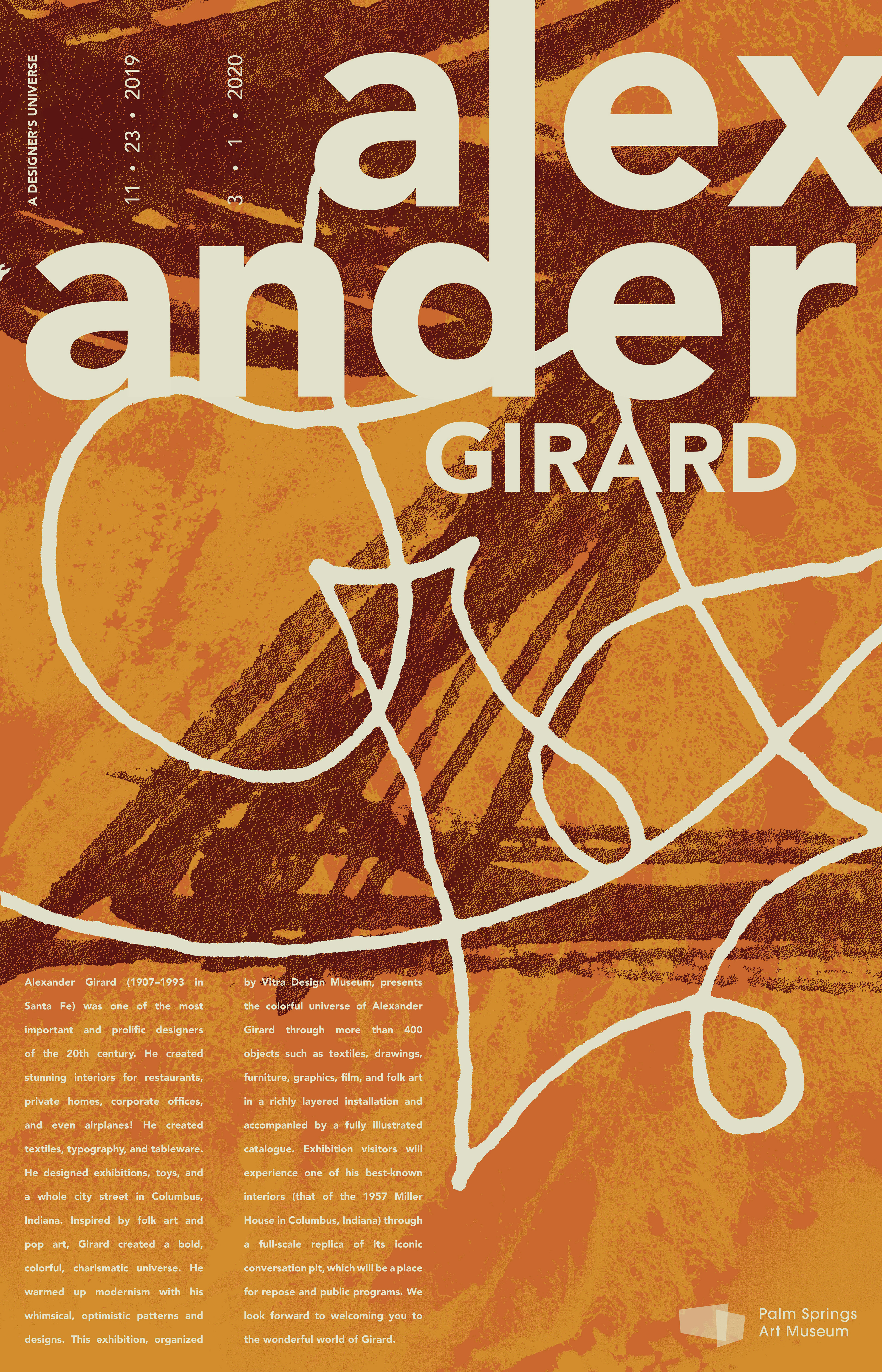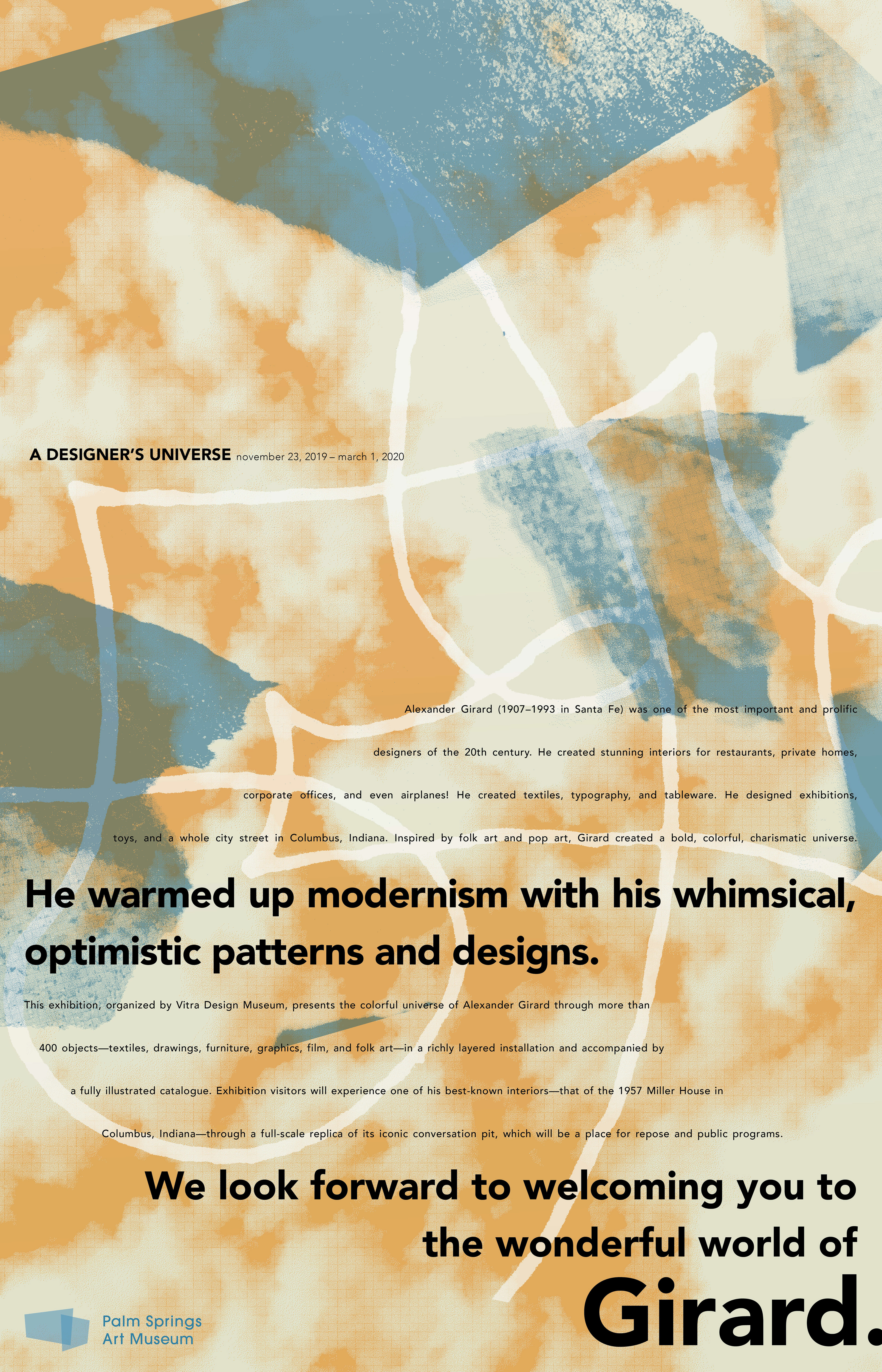 Use dynamic type, image, and message to create a promotional poster for the Alexander Girard exhibition at the Palm Springs Art Museum. Prompt visual engagement and excitement for the museum exhibit. A meaningful user experience for the audience is the forefront of the design's intention.