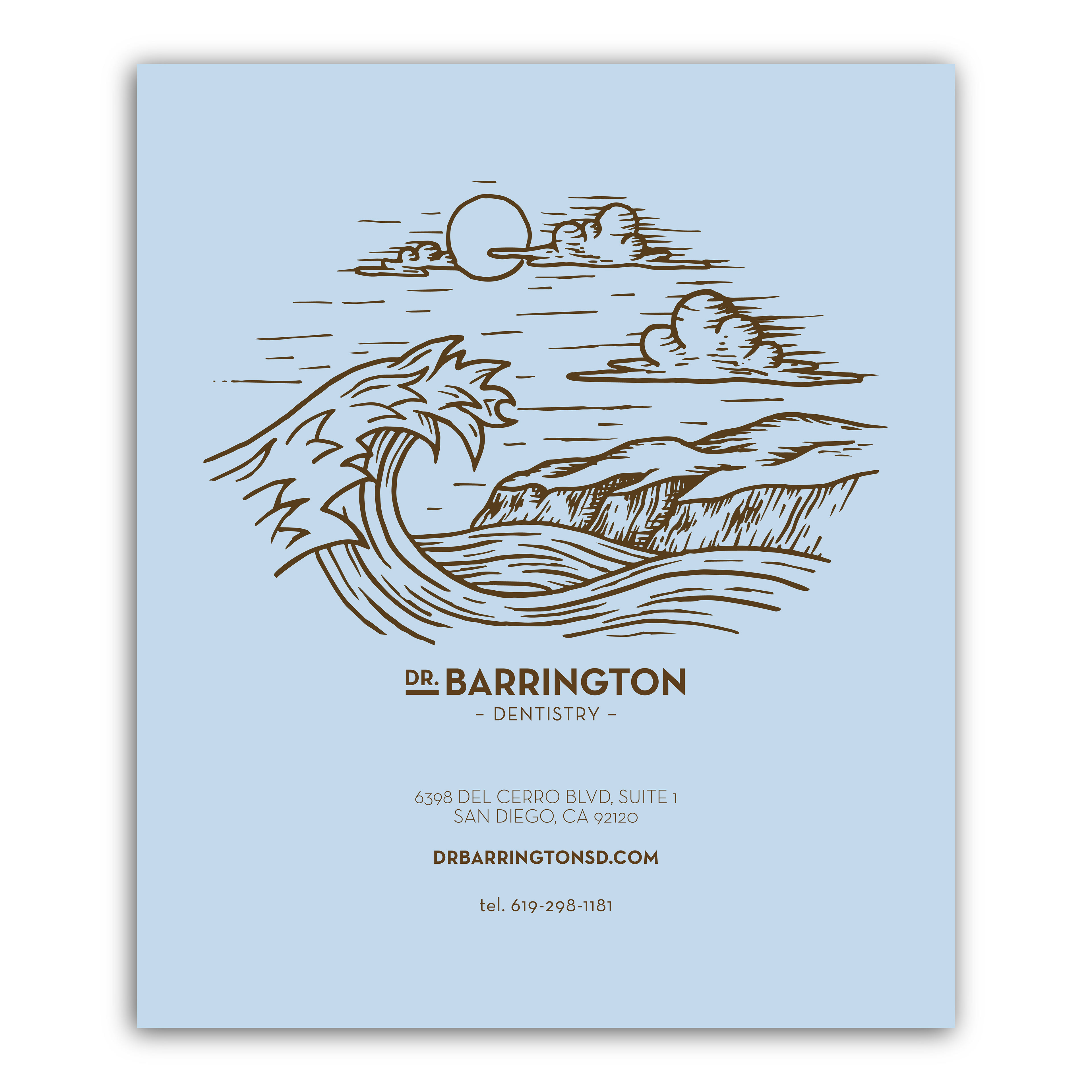 This project consisted of a small-scale rebranding for Dr. Barrington Dentistry. The goal was to reflect the beautiful culture and environment of the office's location in the inland hills of San Diego. I developed a few iterations of the primary illustration in order to give the client options. The final deliverables were a full logo signature, a small typographic system, and a few print ephemera with applied logo and type. The designs were also later adapted for signage. This project required skills in illustration, branding, typography, layout design, and print formatting.